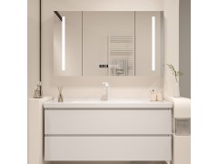 無縫盆巖板實(shí)木浴室柜