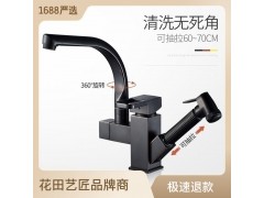 黑色廚房菜盆抽拉式水龍頭 多功能增壓噴槍機(jī)器人冷熱混水龍頭